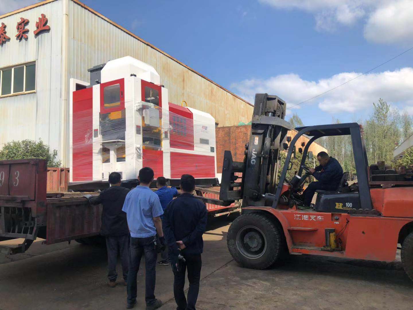 工人師傅正在有條不紊的完成生產(chǎn)線的安裝工作
